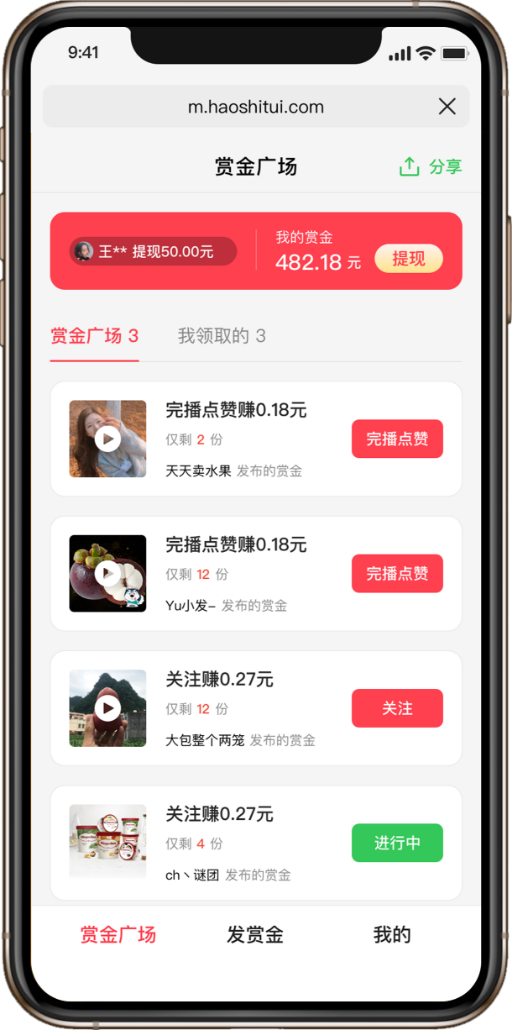 悬赏、发圈任务、随机任务、赏金活动等多种玩 法,让兼职工作更有趣